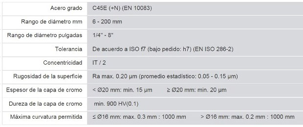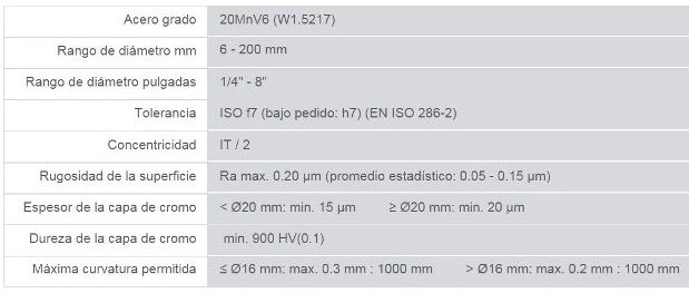 Esta barra es el estándar para aplicaciones hidráulicas, ofrece una excelente superficie y una óptima resistencia a la corrosión.